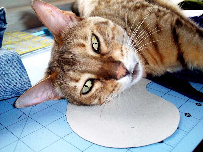Of course, she's not chasing mice at the moment above. She is doing what many of Pam's quilting friends report about their cats: she is claiming a nest, spreading her scent, and endearing herself to the sewing lady. She's also halting progress on Pam's latest project, but that's what cats do.
